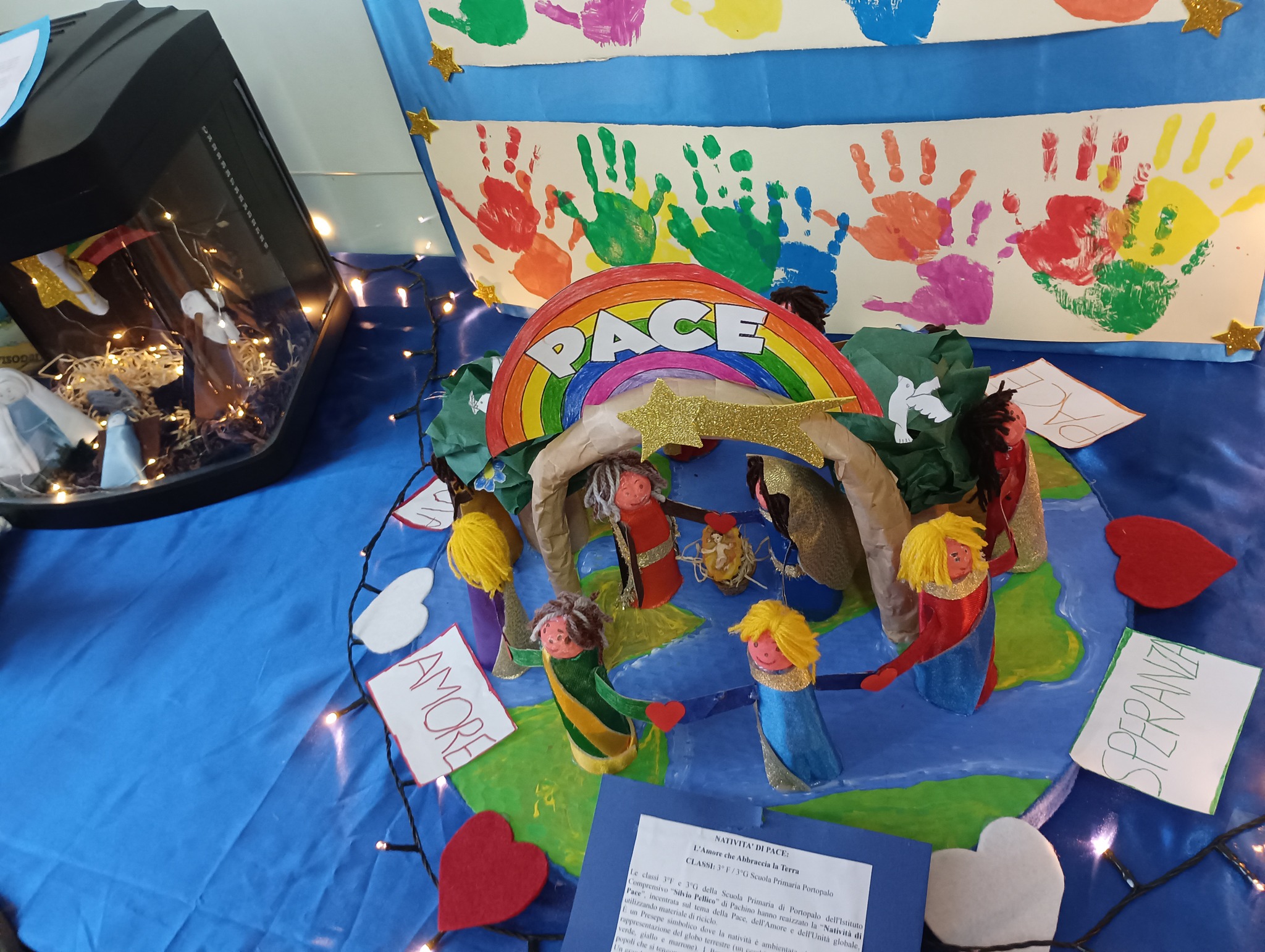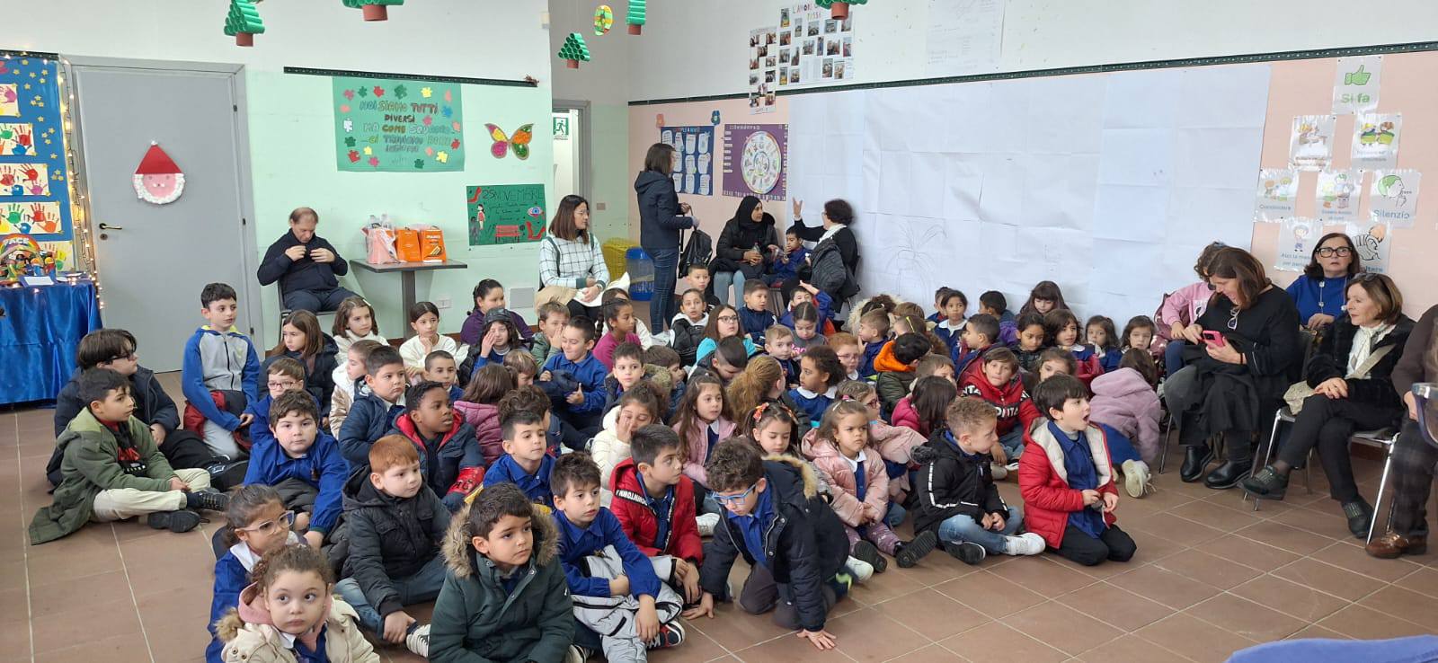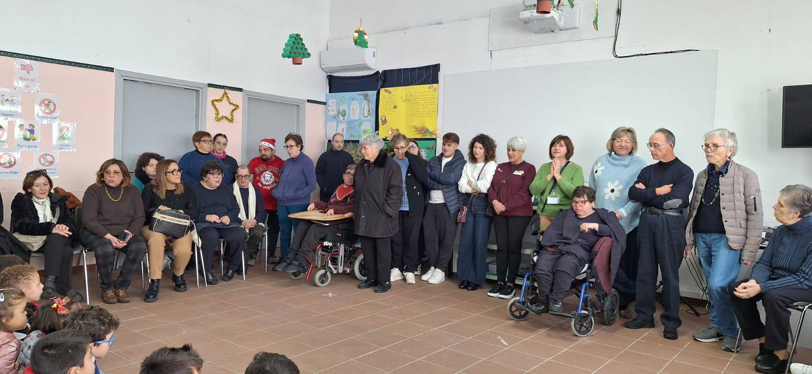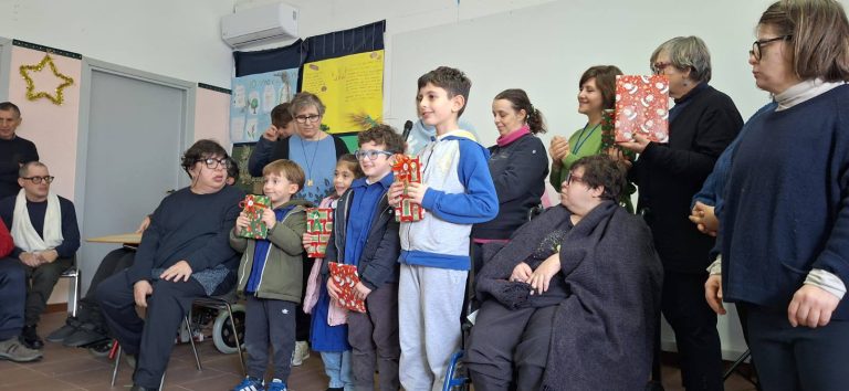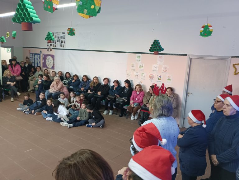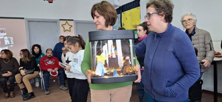 Circondati dai bambini che hanno partecipato al nostro concorso di presepi, davvero uno più bello e originale dell’altro