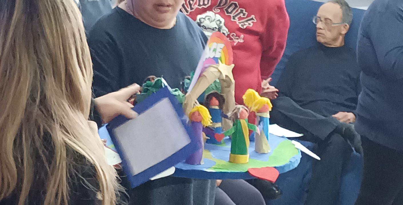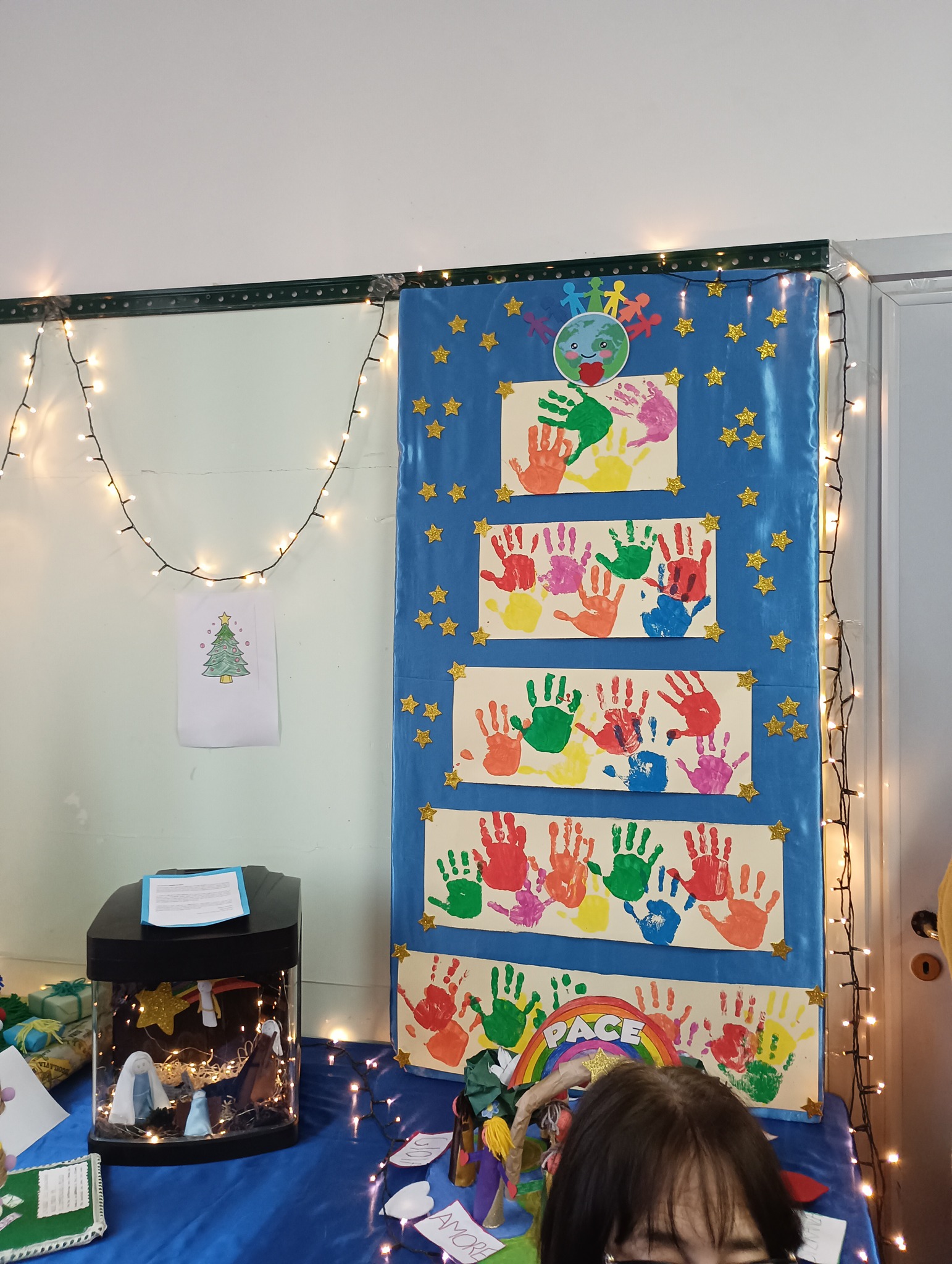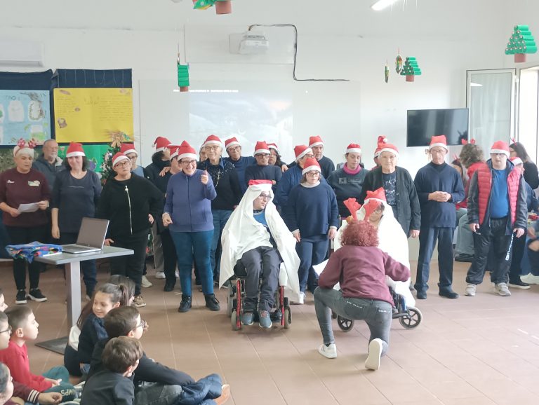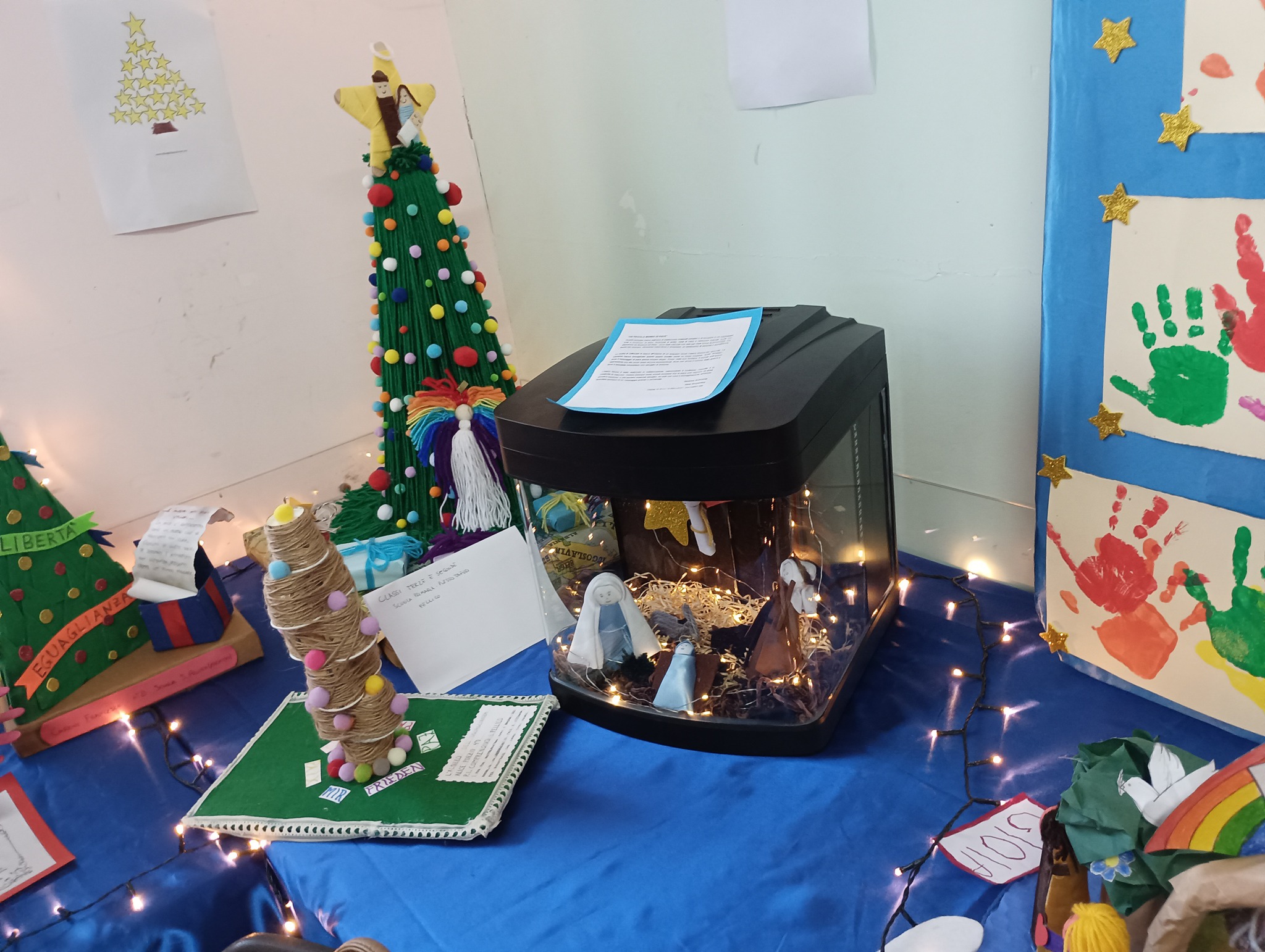 Circondati dai bambini che hanno partecipato al nostro concorso di presepi, davvero uno più bello e originale dell’altro